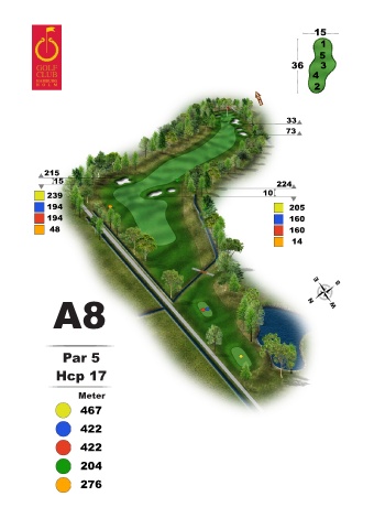 15 1 5 36 3 4 2 NEXT TEE 33 73 215 15 224 239 10 194 205 194 160 48 160 14 E S A8 N W Par 5 Hcp 17 Meter 467 422 422 204 276