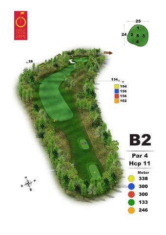 25 1 24 2 5 3 4 NEXT TEE 28 134 194 156 156 102 B2 Par 4 Hcp 11 Meter E 338 S 300 N W 300 133 246