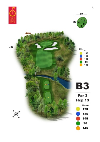 23 3 5 27 4 1 2 NEXT TEE 28 35 135 110 110 55 110 B3 Par 3 Hcp 13 Meter 170 145 S W 145 E N 90 145