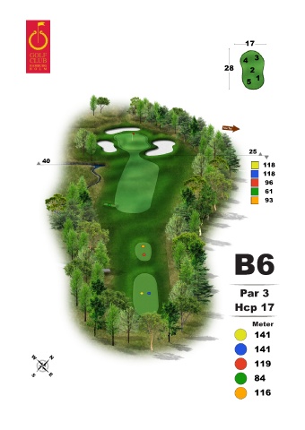 17 4 3 28 2 5 1 NEXT TEE 25 40 118 118 96 61 93 B6 Par 3 Hcp 17 Meter 141 141 W N 119 84 E S 116