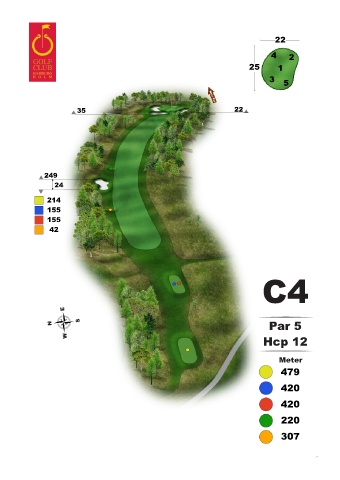 22 4 2 25 1 3 5 35 NEXT TEE 22 249 24 214 155 155 42 C4 E S N Par 5 Hcp 12 W Meter 479 420 420 220 307
