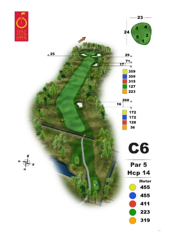 23 3 4 24 5 2 NEXT TEE 1 25 29 71 17 359 359 315 127 223 260 16 172 172 128 36 C6 W Par 5 S N Hcp 14 E Meter 455 455 411 223 319