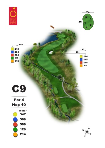 24 5 3 36 1 2 4 CLUBHAUS 206 243 133 204 19 204 184 25 110 145 145 51 C9 Par 4 Hcp 10 Meter 347 308 308 129 W N 214 E S