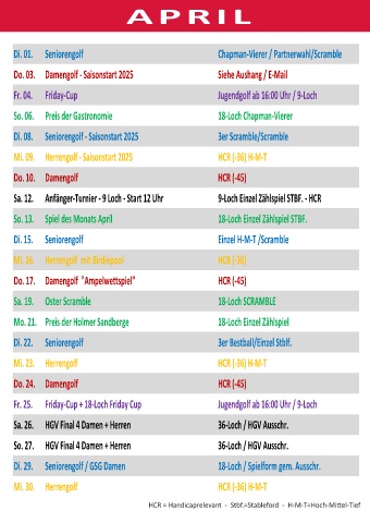 HCR = Handicaprelevant - Stbf.=Stableford - H-M-T=Hoch-Mittel-Tief