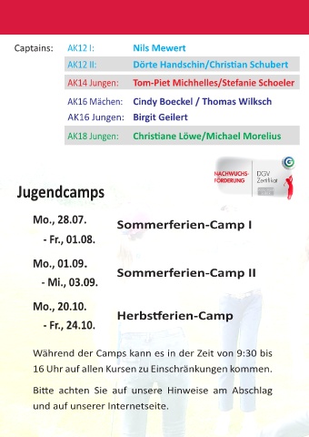Während der Camps kann es in der Zeit von 9:30 bis