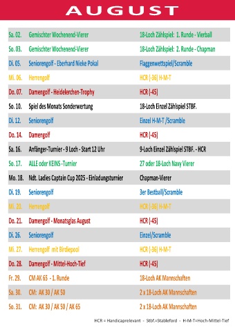 HCR = Handicaprelevant - Stbf.=Stableford - H-M-T=Hoch-Mittel-Tief