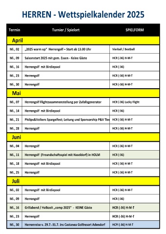 HERREN - Wettspielkalender 2025